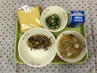麦ご飯、牛乳、筑前煮、すまし汁、ひじきのり佃煮 です。