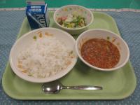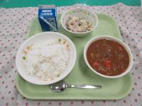 麦ご飯、牛乳、キーマカレー、フレンチサラダ です。