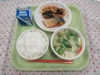 麦ご飯、牛乳、さばの生姜煮、沢煮椀、レモン和え です。