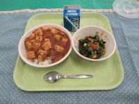 麦ご飯、牛乳、麻婆(マーボー)茄子(なす)、こんにゃくサラダ です。