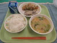 麦ご飯、牛乳、魚のにんにく焼き、みそ汁、ピーナッツ和え です。