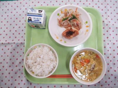 今日の献立は、麦ご飯、牛乳、ユーリンチー、スーミータン、中華サラダでした。