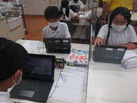 「雨水のゆくえ」を考える学習で、濱先生が事前に準備しておいたコンテンツ動画を視聴して、自分の考えをまとめる流れです。どうして「イヤホン」を使うかというと、一人一人自分が、もっと知りたい、あまりよく分からなかったことを、動画を巻き戻し何度も繰り返し視聴できるようにするためにでした。タブレットに動画を送れば、一斉に視聴するよりも、一人一人の実態・興味関心・理解度に応じた視聴が可能になります。これが、「個に応じた学びのスタイル」なんですね。