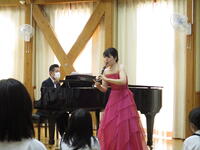 熊本県立劇場のアウトリーチ事業(演奏家派遣事業)で、音楽鑑賞会を行いました。クラリネット奏者の春日香南さん、ピアノ伴奏の吉田秀晃さんによるミニコンサートです。