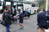 晴れわたった秋空のもと、5・6年全児童が、八竜小バス車庫・桜十字ホールバス停の二カ所の出発地点に元気に集合してきてくれました。