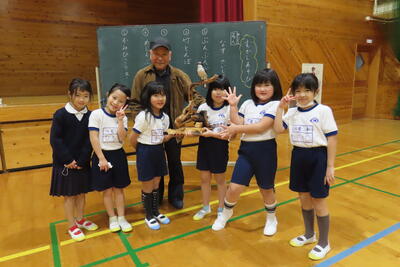 たくさんの昔遊びに出会うことができ、充実した時間となりました。遊んだおもちゃは、ご厚意で子どもたちにプレゼントしていただきました。学校には、木製の鳥をいただきましたので、玄関に飾りたいと思います。ありがとうございました。
