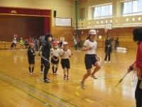 これまで練習してきたことをみんなの前で披露しました。前とび、後ろとび、あやとび、二重跳びなど自分で決めた技に挑戦しました。持久とびでは、低学年は5分、高学年は10分を引っかからずに跳んだ強者もいました。