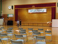 体育館壁面には、学年ごとの掲示やクラブ活動の作品、坂本中学校からの作品等もありますので、空いている時間にご覧ください。