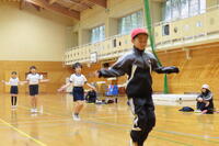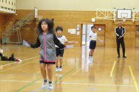 そして、最後は持久跳びです。ひっかかることなく最高5分間跳び続けます。6年生の2人が5分間跳び続けることができました。「私は絶対無理。子供たちの体力はすごいな!」と思いながら見ていました。
