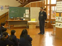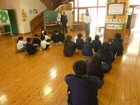 金曜日(2月6日)に警察の方を招いて、不審者の避難訓練をしました。不審者役を立てるのではなく「もし、不審者が来たら」と架空の人物を想定して訓練しました。一番大切なことは、身の安全を確保することです。子供たちは、鍵のかかるトイレに避難をしました。これからも、鍵がかかる部屋を覚えておく必要があります。