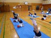 1・2年生の体育の学習で、マット遊びをしています。