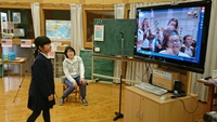 お互いの学校紹介、そして簡単な英語での自己紹介をしました。