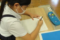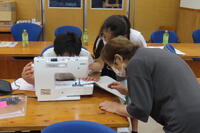 今週、家庭科の時間に地域のボランティアの皆さんに来ていただき、ナップサック作りを始めました。