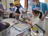 できあがった後は、みんなでいただきました。給食の後でしたが、おいしく食べることができました。中学生になると5個も6個も食べていました。