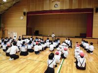 6月は「心の絆を深める月間」ということで、全校集会で、小原校長が話をしました。