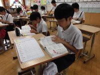 国語:漢字練習の後は、辞書で熟語の意味調べをしています。