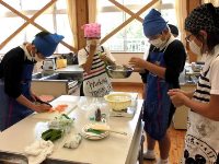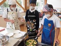 家庭科:朝食に合うおかずを作りました。フライパンで炒める工程が入っています。