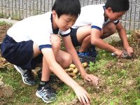 理 科:じゃがいもの葉のデンプン反応実験が終わったので、収穫しました。給食に使用されます。
