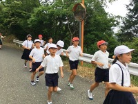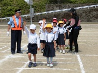 1年生から3年生までは、安全な道路の歩き方や渡り方、バスの乗り降りなどを