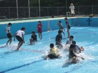 八竜小学校のプールは、ちょっと涼しいところにありますので、水が冷たく感じます。しかし、子どもはおかまいなし、寒いことすら、楽しんでいます。やっぱり、プールは楽しいですね。