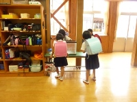 廊下を通る子どもたちが面々にのぞき込んでいきます。