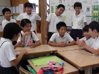 総合:ただのトランプゲームではありません。来週、町内の施設との交流で行う内容を、班ごとにプレゼン中です。プレゼンの後はよりよいものにしていくために互いにアドバイスを行いました。