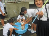 生活科でおもちゃ作りをしました。今回は、水に浮かべて遊ぶおもちゃを作りました。