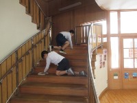 少ない人数で、広い校舎をぴかぴかにしています。