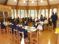 1月24日から30日の給食週間の取組の一環として、異学年交流給食を実施しました。どのテーブルからも、楽しい会話やおしゃべりがたくさん聞こえてきました。