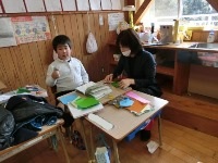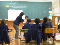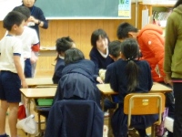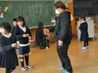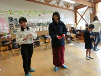 先日、本年度最後の授業参観が行われました。1年生は、生活科で「昔遊び」を紹介しました。おうちの方の前でこれまで練習したコマ回しやけん玉、竹とんぼ、お手玉などを紹介しました。紙飛行機や紙コップを使った糸電話なども紹介しました。上手にできて拍手をもらったりして、うれしそうな子どもたちでした。紹介したあとは、おうちの方と一緒に遊び、教室は大にぎわいでした。