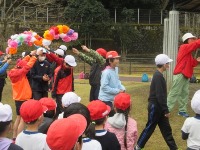 みんなで、わいわいパークへ歩いて行きました。運営委員会の新旧交代式では、旧役員のあいさつのあと、新役員の元気なパフォーマンスがありました。各学年からの出し物も、趣向を凝らしたものが多く、下級生からメダルやしおりのプレゼントをもらって、ちょっと照れながらも嬉しそうな6年生の笑顔が印象的でした。そのあと、みんなで、フリスビーやドラゴンボールゲームを楽しみました。6年生との最後の楽しい思い出ができました。