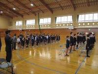 今日は、この度の人事異動により本校を退任される先生方とのお別れの式がありました。退任される6名の先生方からお話を聞いた後、代表の子どもたちが手紙を読み、花束を手渡しました。式の最後には、子どもたちがアーチを作って先生方を見送りました。