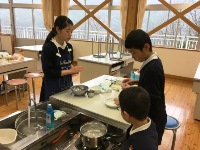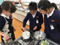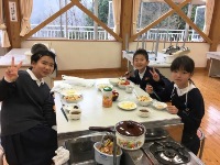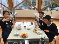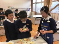 5年生は,家庭科の学習で「団らん」の意義について学習しています。今日は,白玉団子とフルーツヨーグルトをつくり,みんなで団らんの実践をしました。友達と和気あいあいとおしゃべりし,残りわずかな5年生の時間を楽しくすごすことができました。
