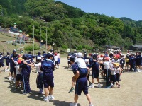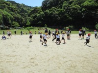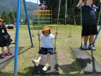 その後、中学生と一緒に、わいわいパークへ行きました。交流会で2回目の自己紹介をしました。じゃんけん列車やしっぽ取りなど、中学生と交流をした後、お弁当を食べました。遊具でも遊んで楽しい、充実した1日になりました。