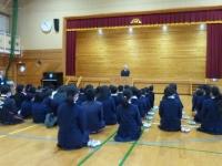 3学期にはいり、全学年練習をはじめました。特に、3年生にとっては初めての小型条幅で、一枚の作品を仕上げるのに悪戦苦闘しています。心を落ち着かせながら取り組んだ作品の出来上がりがとても楽しみです。