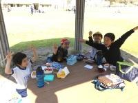 とてもいい天気の中でお弁当を食べたり遊んだりし,6年生との楽しい思い出ができたようです。