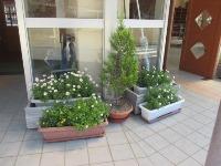 玄関には、環境委員会が育てているノースポールとパンジーが、