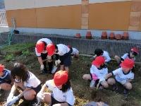 土の中では、かわいい大根ができていました。1年生にぴったりのサイズ!!