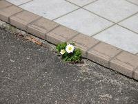 なんと、玄関とアスファルトの境目から、なんとまあ、かわいらしいノースポールが!