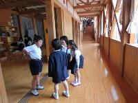 まず、お互いに自己紹介をして、2年生が班ごとに学校を案内しました。教室の紹介だけでなくクイズを出して1年生に学校のことを教えていました。その後、体育館で鬼ごっこをして楽しみました。最後は、手作りのメダルを1年生にプレゼントして終わりました。