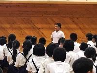 また、始業式の後には緑の少年団結団式があり、リーダーの6年生が宣言文を発表してくれました。
