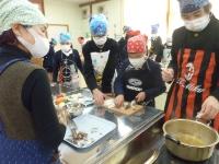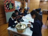 中学3年生と小学6年生で、「つんきりだご汁」を作りました。こねた「だご」のかたまりを手でちぎって入れます。ここから「つんきり」が来たのでしょうね。郷土に伝わる料理、おいしくいただきました。
