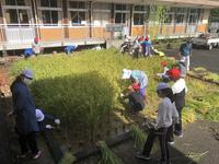 稲は教室に干しました。(すずめに食べられないようにです。)