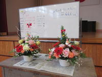 今日は「クリスマスアレンジメント」を「花の店 カム✩カム」の小柳智恵美さんが指導していただきました。