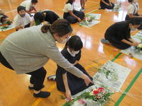 今日の午後、4・56年生は「フラワーアレンジメント教室」を体験しました。