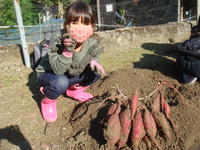 今年は、学校で、いもの苗は植えたものの、学校に人がいないため、しかやいのししにやられてしまい、いも掘りができないでいました。地域の方の有り難いお誘いで、子供たちに楽しい体験をさせていただくことができて感謝です。