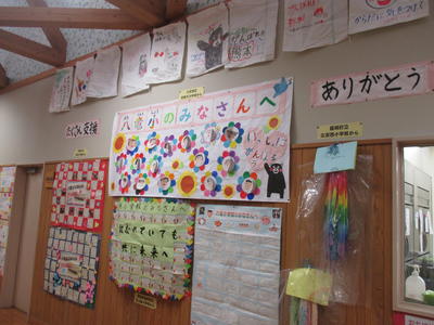 日奈久小では保護者の皆様にご覧いただく機会がなかったため、来週火曜日授業参観を前に、職員室前のろうかに掲示しました。