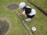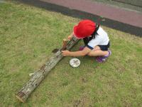 今日の4時間目、1・2年生合同で、生活科の学習として「しいたけのこまうち」が行われました。
