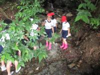 1年生にいなさん・みゆさんも、2年生のお姉さん・お兄さんのサポートを受けながらも、「探検に出発!」と沢を登ったり下ったりと楽しそうでした。