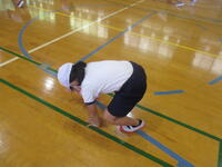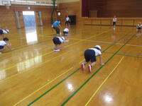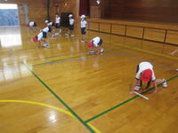 今日の1・2年生の体育では、東田先生が最初の補助運動で、取り入れていました。